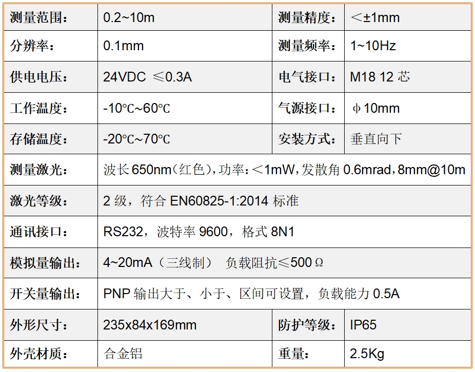 ● 測量精度<±1mm,分辨率0.1mm